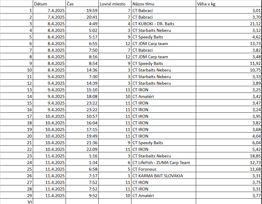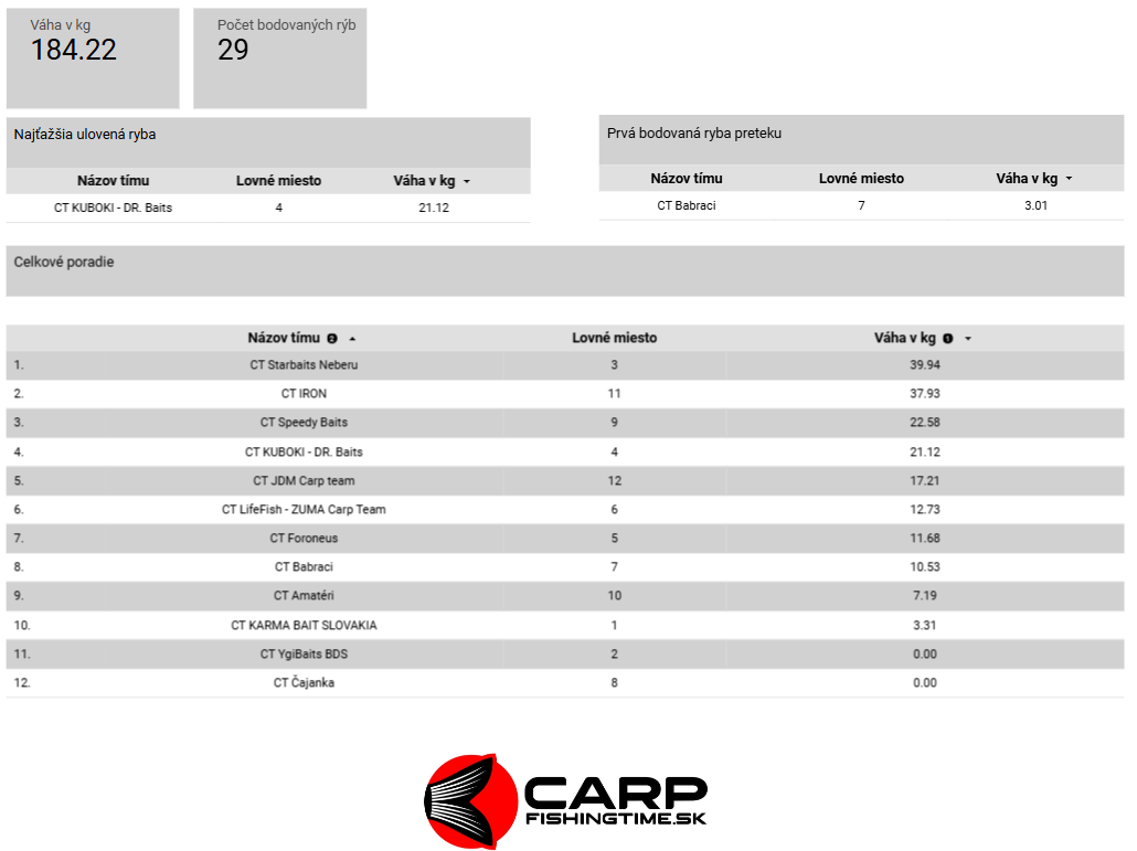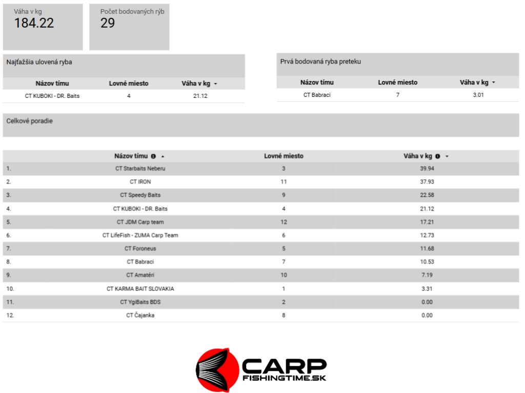 NO LIMIT CARP CUP – ŠTRKOVISKO KRÁSNA 2. ROČNÍK – ONLINE VÝSLEDKY